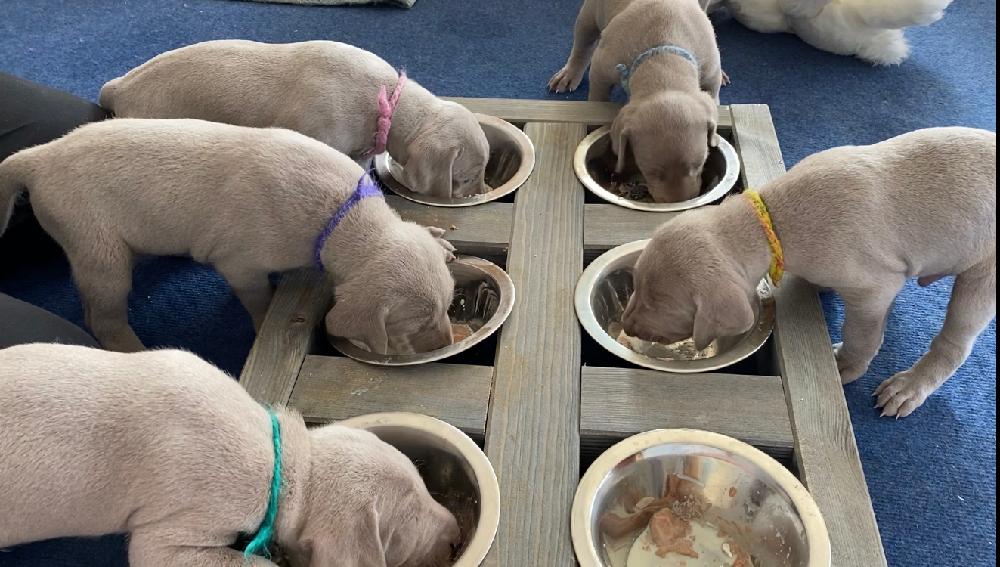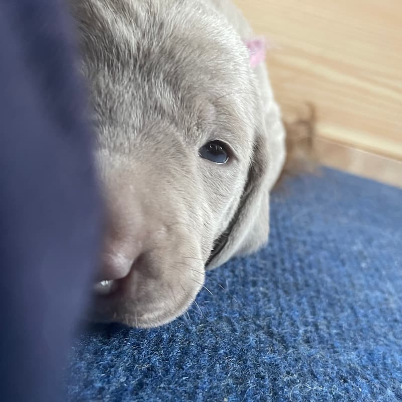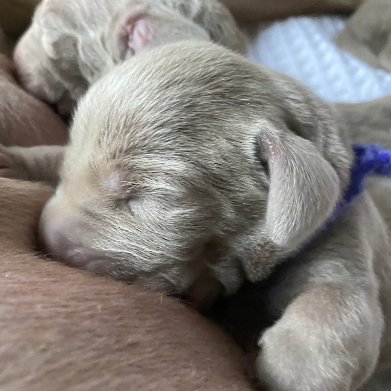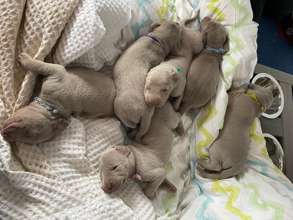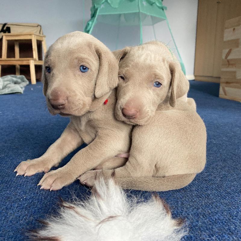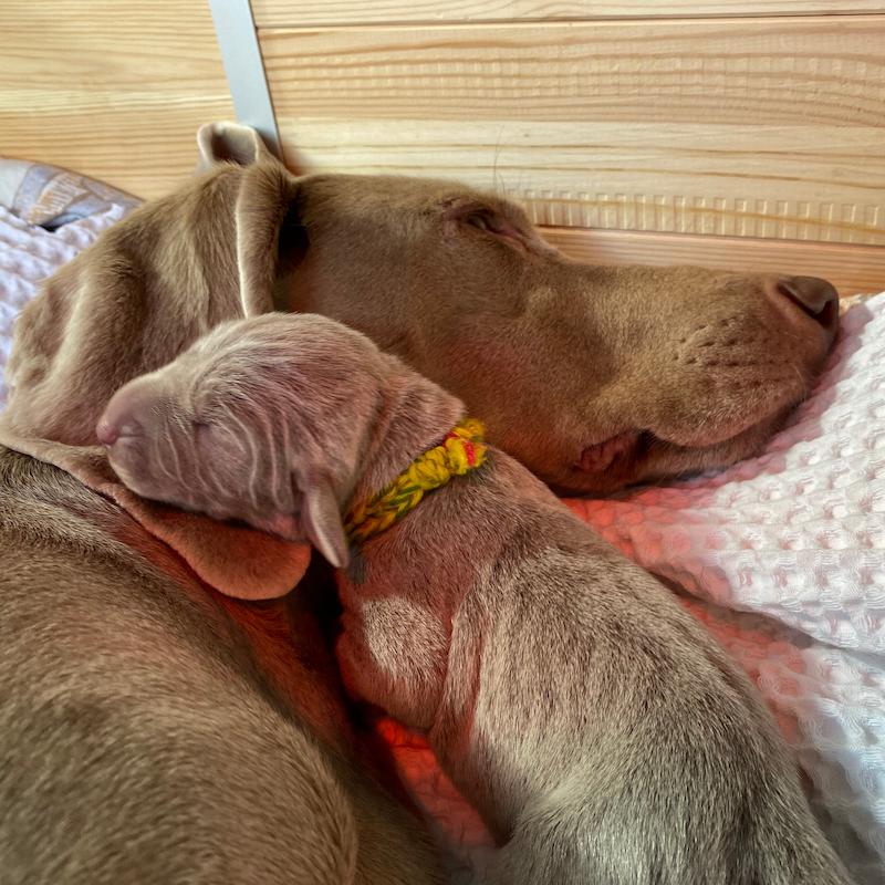 Von Beginn Ihrer Trächtigkeit an hat Chaplin die Wurfbox als ihren bevorzugten Schlaf- und Ruheplatz angenommen. Die Welpen werden hier in den ersten 3 Wochen rund um die Uhr umsorgt. Da die Welpen in den ersten Wochen ihre Körpertemperatur nicht selbstständig regeln können, sorgt die Rotlichtlampe für eine angenehme Wärme.