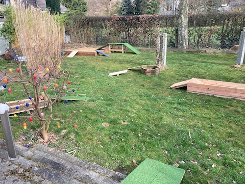 Im „Welpenpark“ lernen die jungen Hunde das Leben draußen kennen. Mit unterschiedlichen Untergründen (Sand, Gras, Holz, Stein) sammeln sie Erfahrungen. Die Hängebrücken schulen die Motorik. In dem kleinen Pool kommen sie mit Wasser in Berührung.
